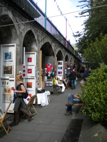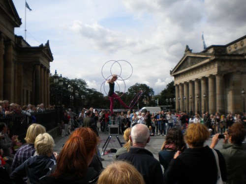 Whereas there is quite a bit to see while in Edinburgh, I timed my trip to coincide with what are commonly known as “the festivals.”  For roughly one month each year, over 300 different venues throughout the city host thousands of music groups, theatre performances, art installations,  comedy acts, and dance routines.  The already-packed city feels even more vibrant and alive with the thousands of addition visitors that the festivals draw in, creating an almost electric feel and energy around town.  Sadly, most of the performances do not allow photographs, so I don’t have too many pictures to post, but so far I’ve attended a raucous Japanese Raiko Drum session, a dramatic play centering around the people coming in an out of a take-out restaurant, a Korean music and dance troupe, a post-apocalyptic opera, a blown-glass art exhibit, and a few late-night stand-up comedy acts (though unfortunately the Buddhist Meditation class I wanted to attend was cancelled).  The shows run all day, so you could easily squeeze in 5 or even 6 performances per day, if you were feeling ambitious.