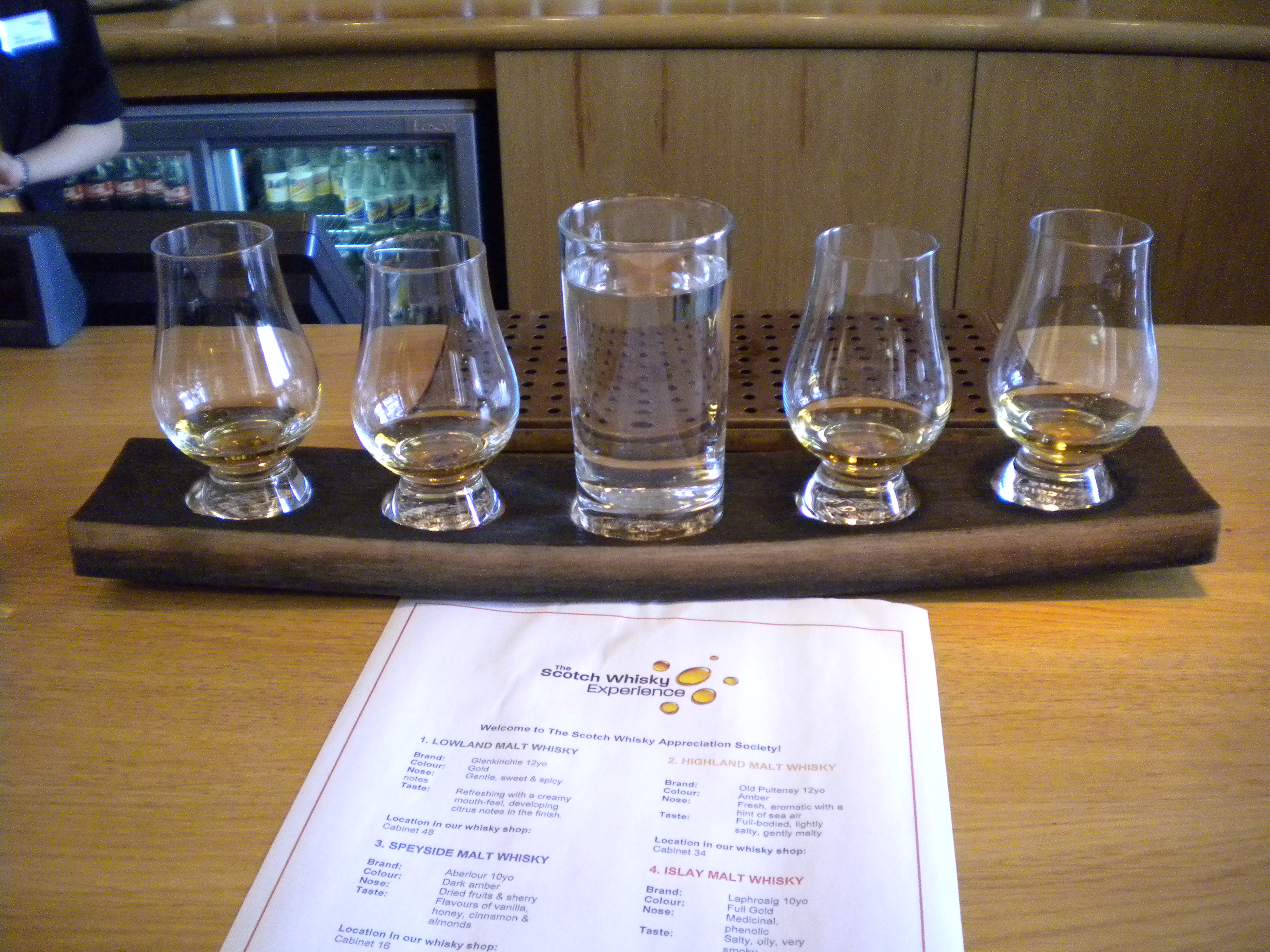 Samples from the Lowlands, Highlands, Speyside, and Islay regions. Though apparently I’m a bit in the minority, the smokey-peatiness of the Islay Whiskys clearly puts this one above the others as my personal favorite