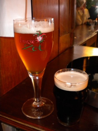 Despite the glass’s attempt to fool you, the beer on the left is actually a Trappiste Tripel (Chimay, to be exact)