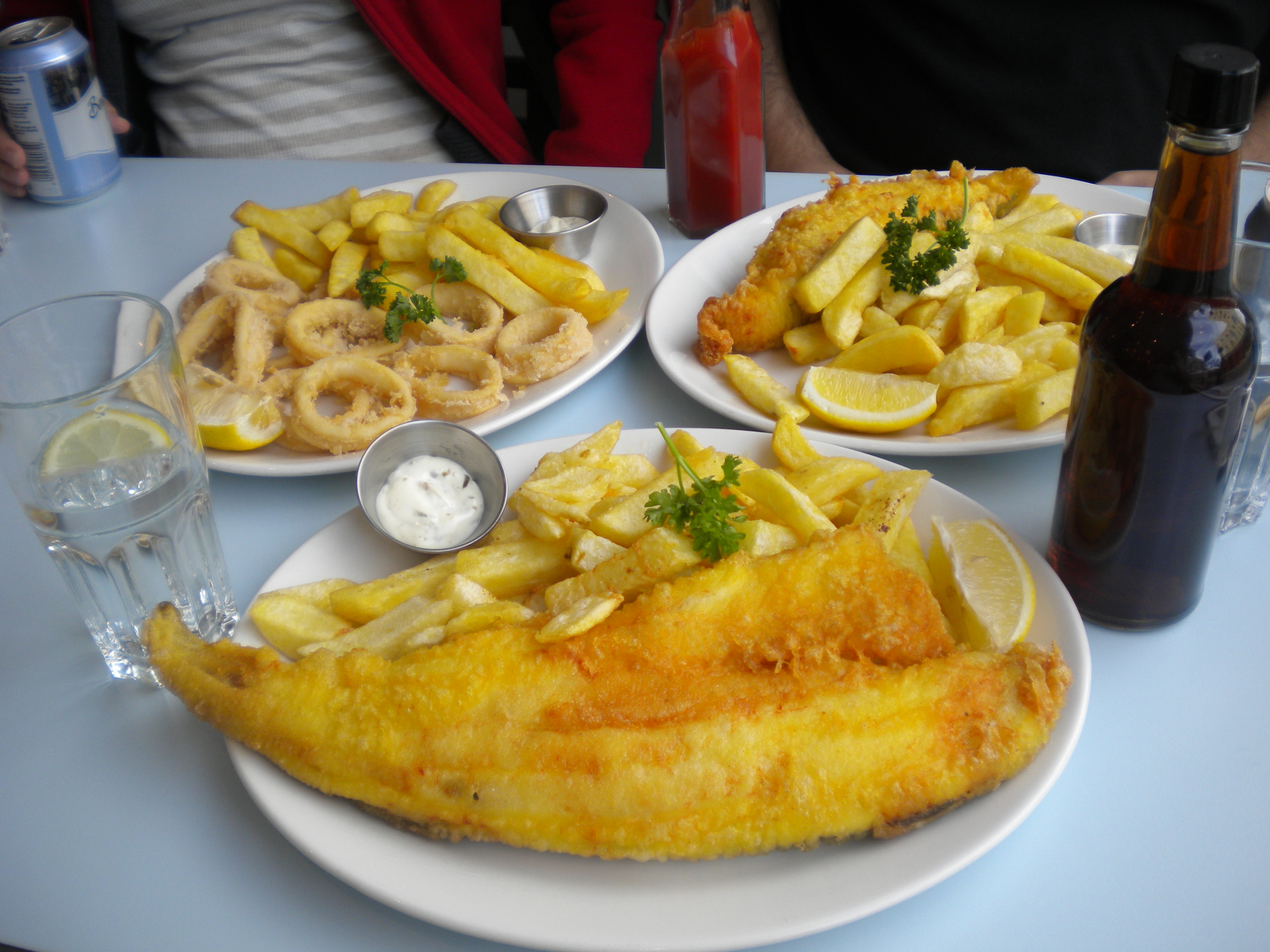 Cod (the classic), Haddock, and Callimari versions, served up with ketchup, tartar sauce, and malt vinegar (and rolled in a newpaper cone if taken away)