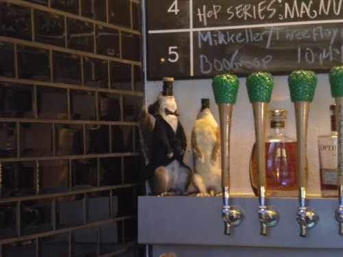 2 bottles of “The End of the World” casually placed at the end of the bar