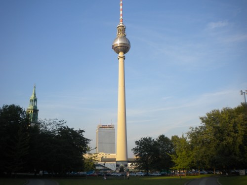 The majority of the sights are roughly lined up on an East-West corridor, with the Siergessaule (in the above picture) marking the Westernmost point in Tiergarten and the Fersehturm (below) marking the Easternmost point. Though they are too far apart to show via pictures, there is a great scene in which you can stand at either of these two points, look down spacious and tree-lined boulevard known as the Unter den Linden, through the Brandenburger Tor (the second picture below) and see the other off in the distance.