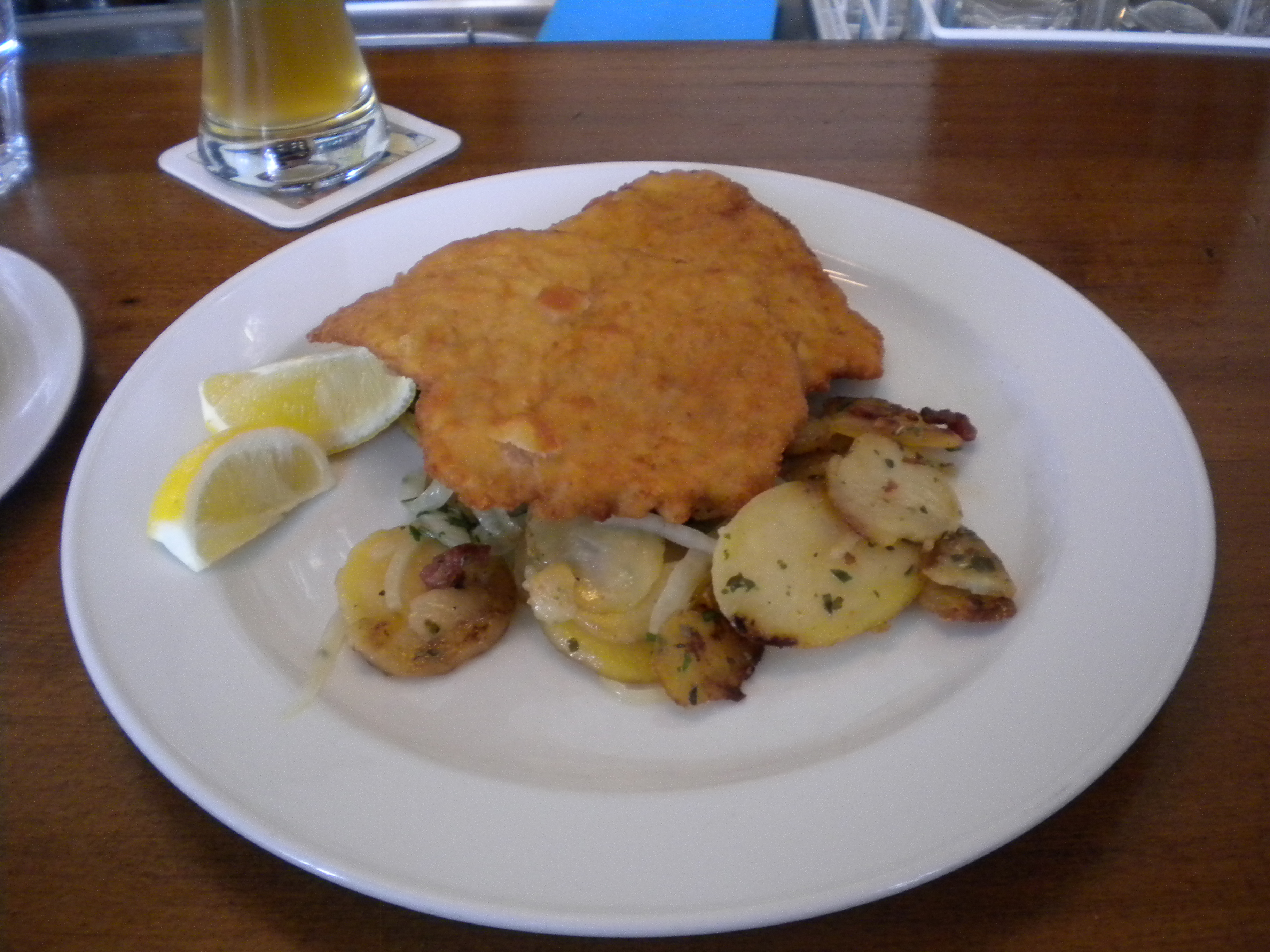 Schnitzel: a pork cutlet pounded flat, breaded, then fried (served with potatoes, of course)