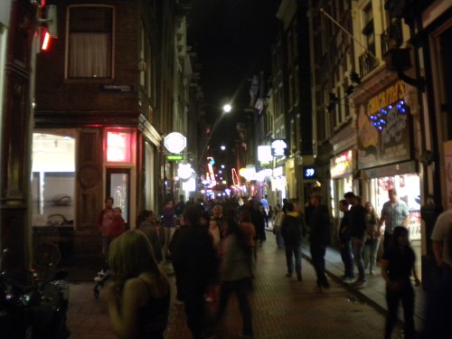 The Red Light District at night (one of the few vantage points in which there was no obscene content)
