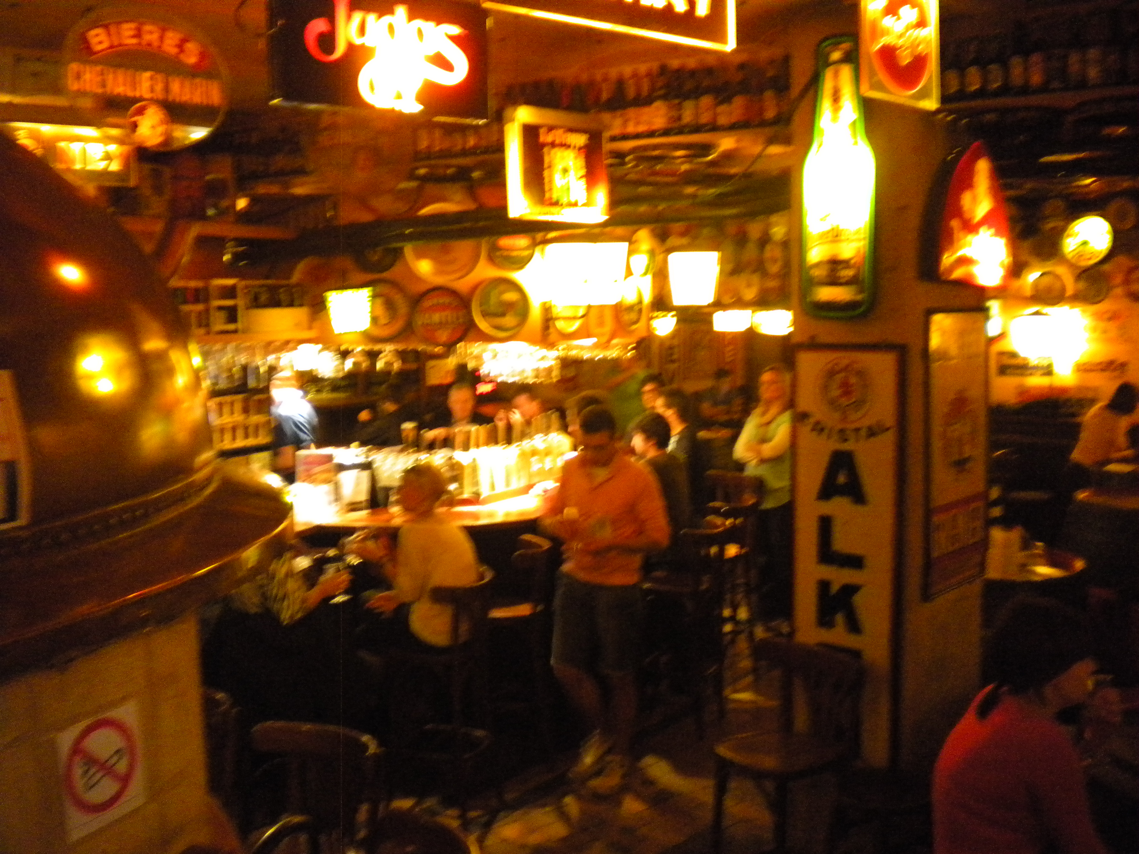 The basement houses the Delirium Cafe itself (the floor above the Tap Room houses the Hop Loft, if you’re curious). The lights were low, so it was difficult to get a good picture