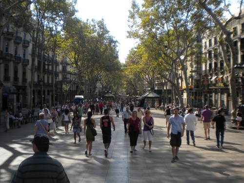 The often immitated “La Rambla,” the tree-lined, mostly pedestrian boulevard that acts as the main drag in Barcelona. Though the touristy kitsch has taken over most of the street, it is still the best place in the city to people watch