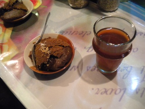 Lamb tagine served with bread and mint tea (dubbed “Morracan Whisky”)