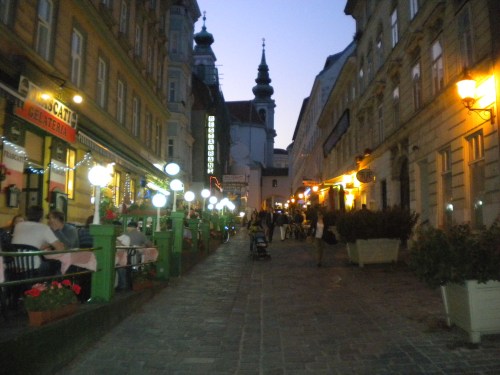 Cafes lit up at night