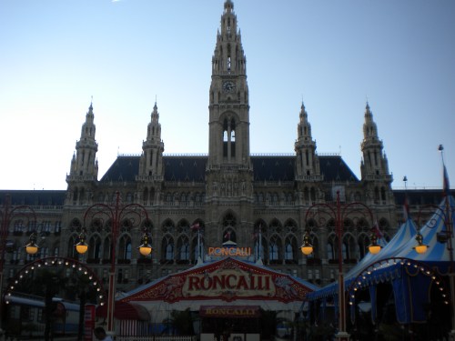 The beautiful City Hall building, only slightly marred by the presence of a circus out front