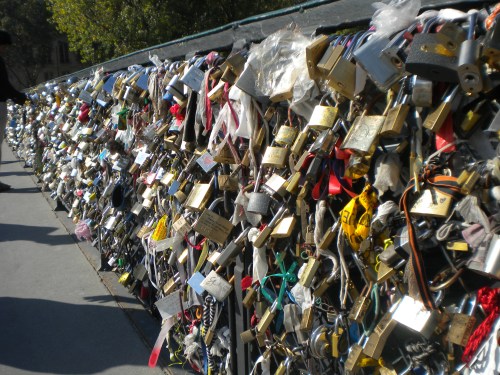 At some point, just outside Notre Dame, someone had the idea to write a message on a lock and then permanently lock it to the railing of the Pont Neuf. As you can see, that idea really took off and many others have followed suit.