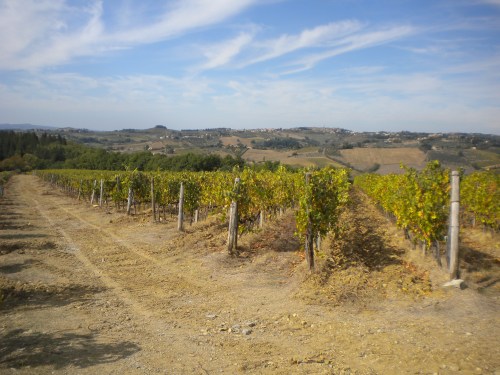 Rows of grapevines at a local vineyard. In this case, the grapes are Sangiovese grapes, the primary grape variety used to make Chianti