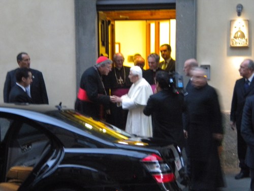 The Pope being greeted upon arrival