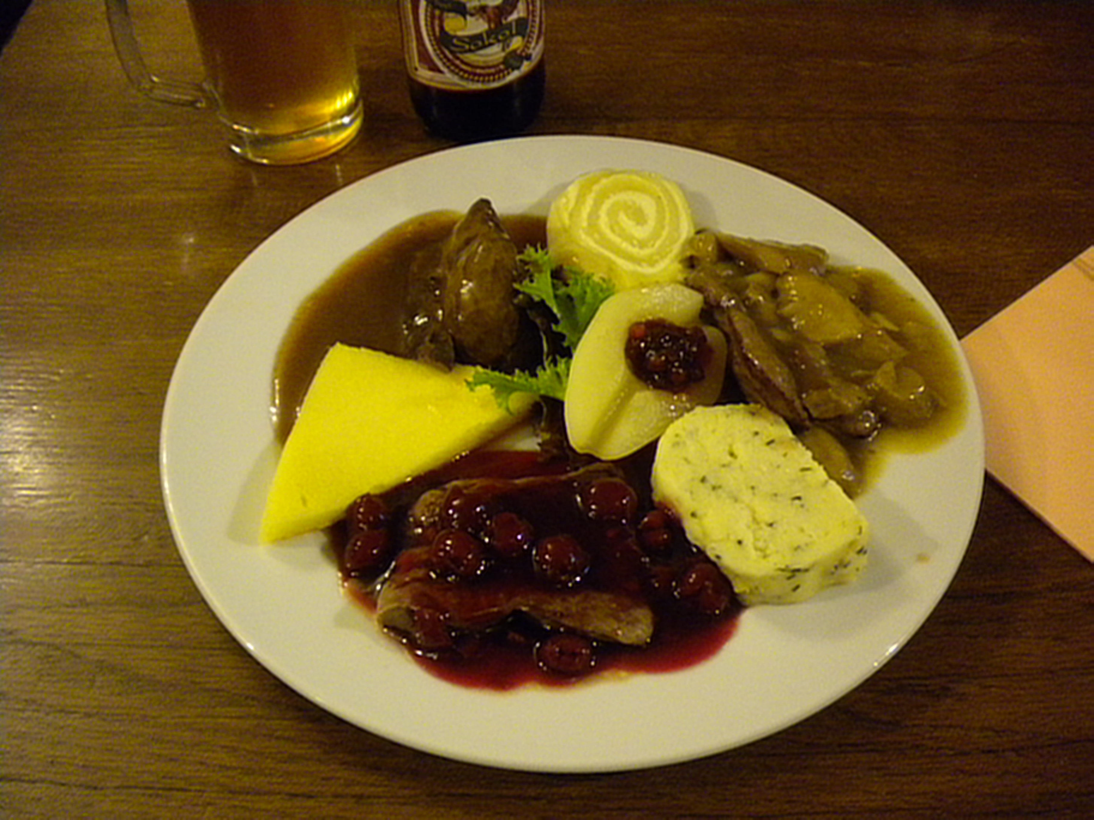 Given that 70% of Slovenia’s landmass is covered in forests, it isn’t surprising to see quite a bit of game on the menus. See here is a forest trio: Deer medallions with sour cherries, Stag with porcini mushrooms, and Wild Boar with a green pepper sauce