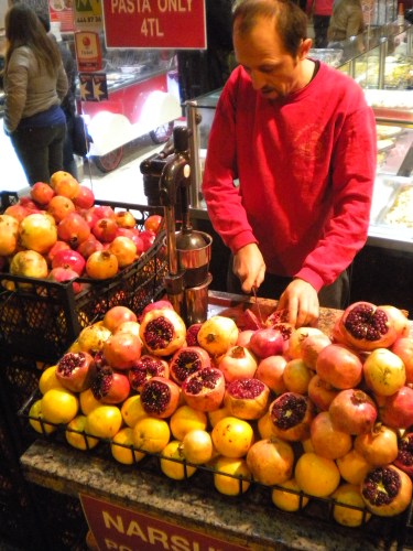 Whereas Pomegrantes are highly seasonal and can be quite expensive in the United States, they seem to be all-to-common in Eastern Europe and into the Middle East. And as such, there were vendors fresh-squeezing generous glasses for passing pedestrians for about $1 a pop (which utilized the juice of 3-4 whole pomegrantes for each glass). So, much like my daily ritual become drinking Orange Juice from the vendors in Morroco, I pretty much drank my weight in Pomegrante Juice while in Turkey