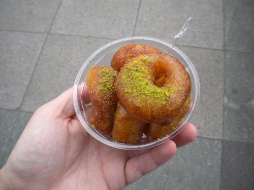 Simit – a circular bread coated in Sesame seeds. These things are EVERYWHERE, and luckily only cost about $0.50, though they can be a touch stale from time to time