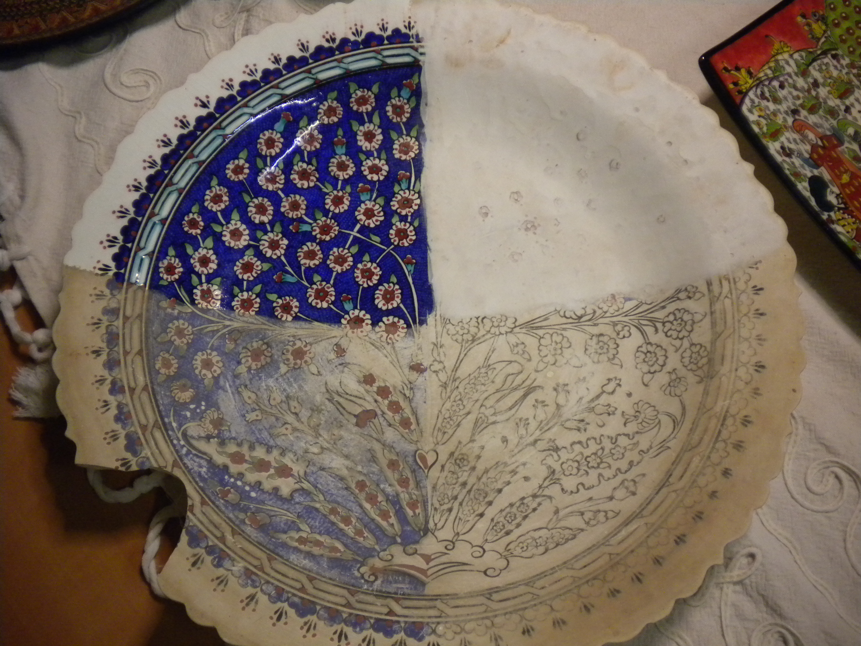 Pottery is still an important craft to the local economy. Seen here is a plate illustrating the various stages of artistic craftmanship