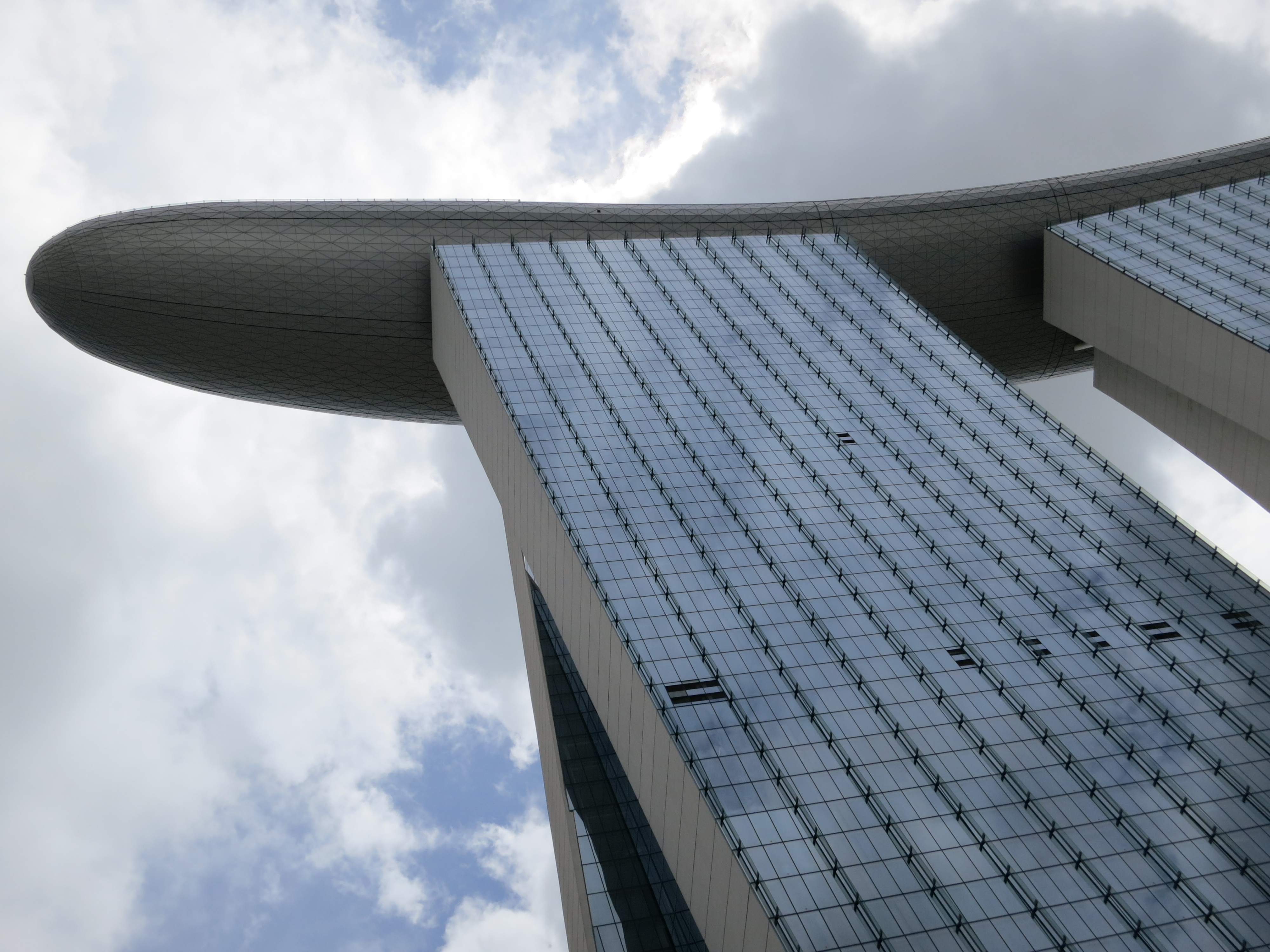 At the tip of the “surfboard,” to the left as we currently see it, is the Marina Bay Sands Skypark. This viewing platform is open to the public and costs S$20, or roughly USD$16
