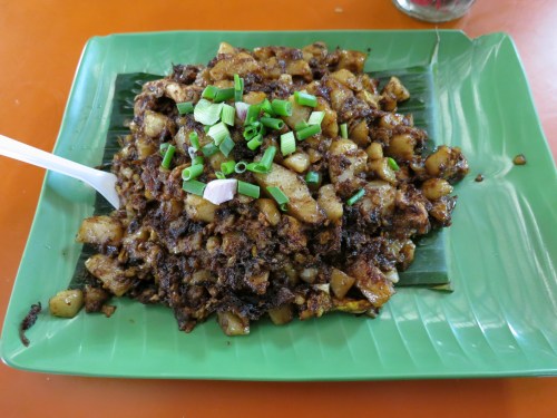 Fried Carrot Cake – though not what you may be thinking. This version consists of tiny, gelatinous cubes of rice flower and radish fried to crispy perfection (there is both a sweet black version and a more savory white version)