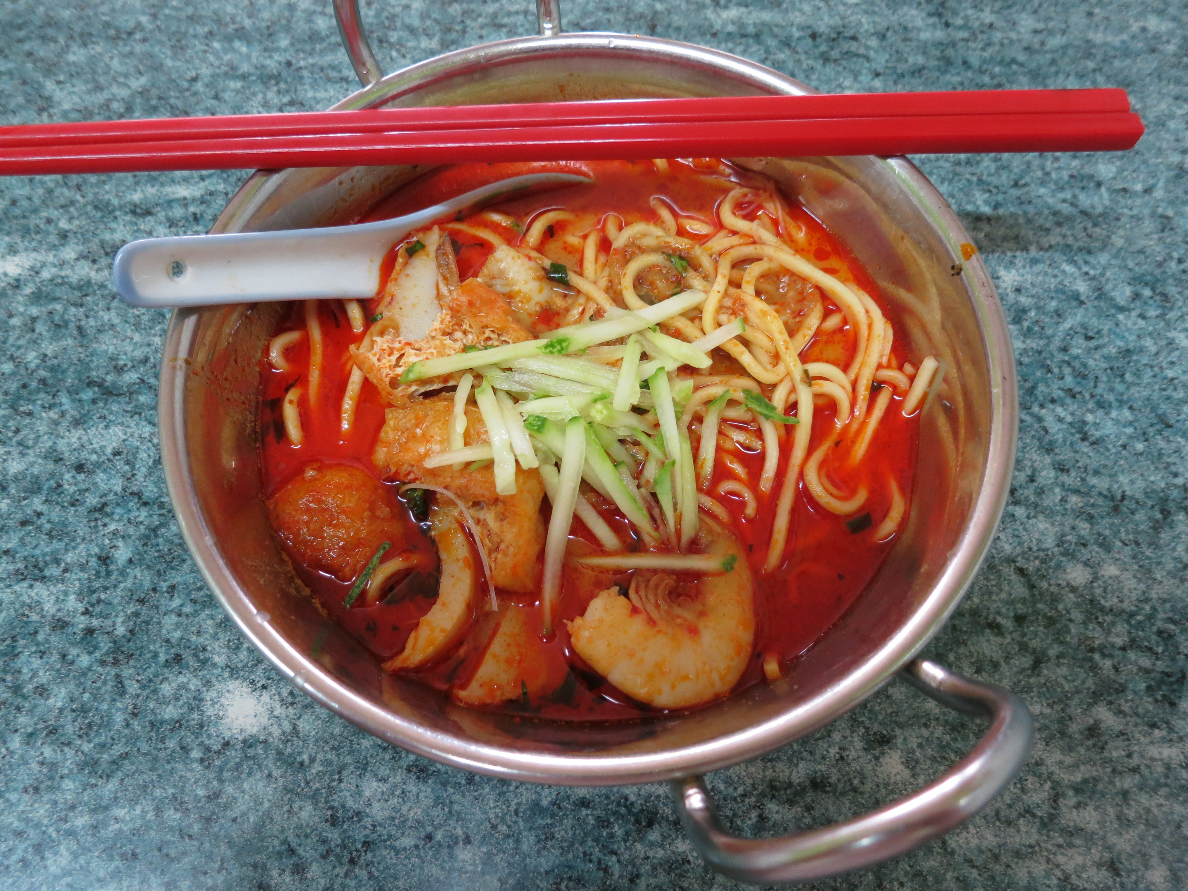 Laksa again, though the Malaysian version eschews much of the coconut milk and in its place adds a LOT more chili, creating a sour-and-spicy dish that will have you instantly sweating through your shirt