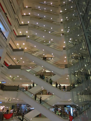 It’s not really my cup of tea, but if a day of shopping sounds like heaven to you, you can’t miss the Times Square Plaza — the world’s fifth largest building.  It houses over 1,000 shops, 1,200 service outlets, a hotel, movie theatre, 65 food outlets, and Asia’s largest indoor theme park. The escalators (shown here) in the shopping area of one of the two towers were intimidating enough for me