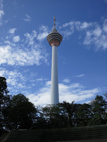 Looking up at the Menara KL Tower