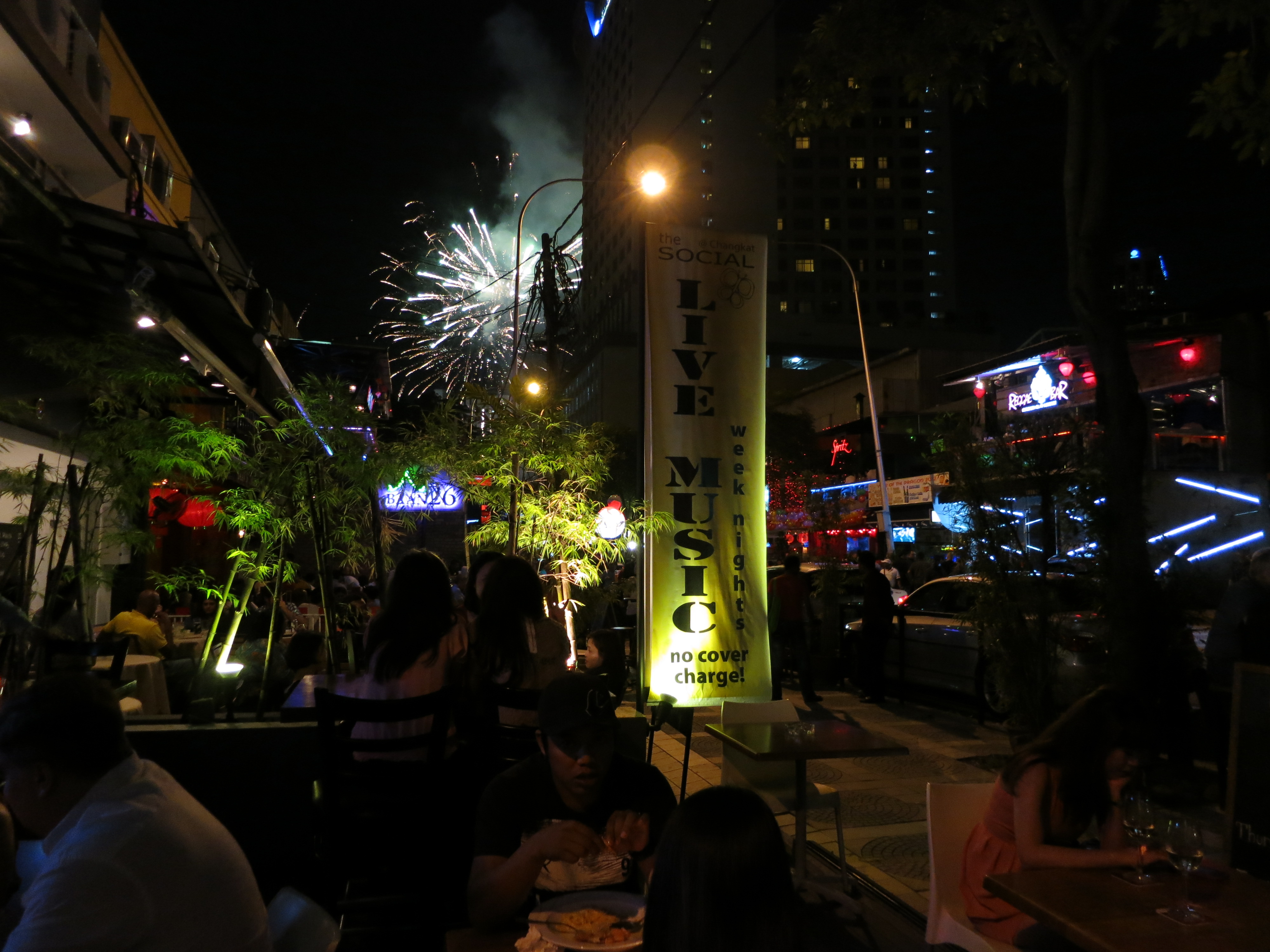 Fireworks as seen from Changkat Bukit Bingtan (the nightlife-heavy street near center of town)
