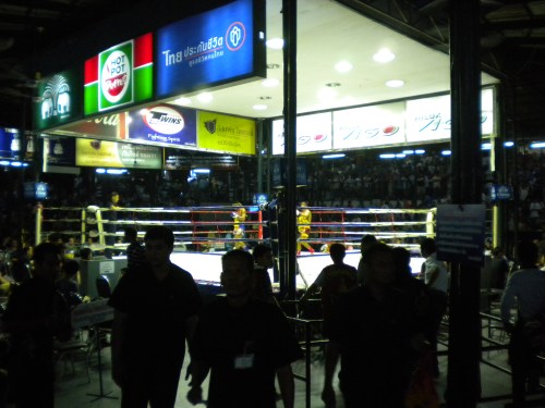 The Ring at Lumphini Stadium.  Though the riotous atmosphere of the normal “standing-room” sections would have been quite an experience, I opted to splash out a few extra dollars and spring for ring-side seats (look who’s the high-roller now!)