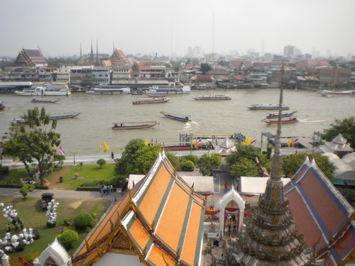 It is possible to climb the tower of Wat Arun, but be forewarned, the steps are extremely steep. It does, however, afford a great view back over the river, which seems just as traffic-clogged as the streets of the city