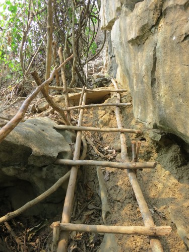The first half of the climb is facilitated by a few crude bamboo ladders to help one along