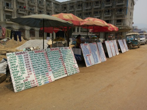 The roadside vendors selling cheap Western food and fruit shakes outside of the Tubing Station