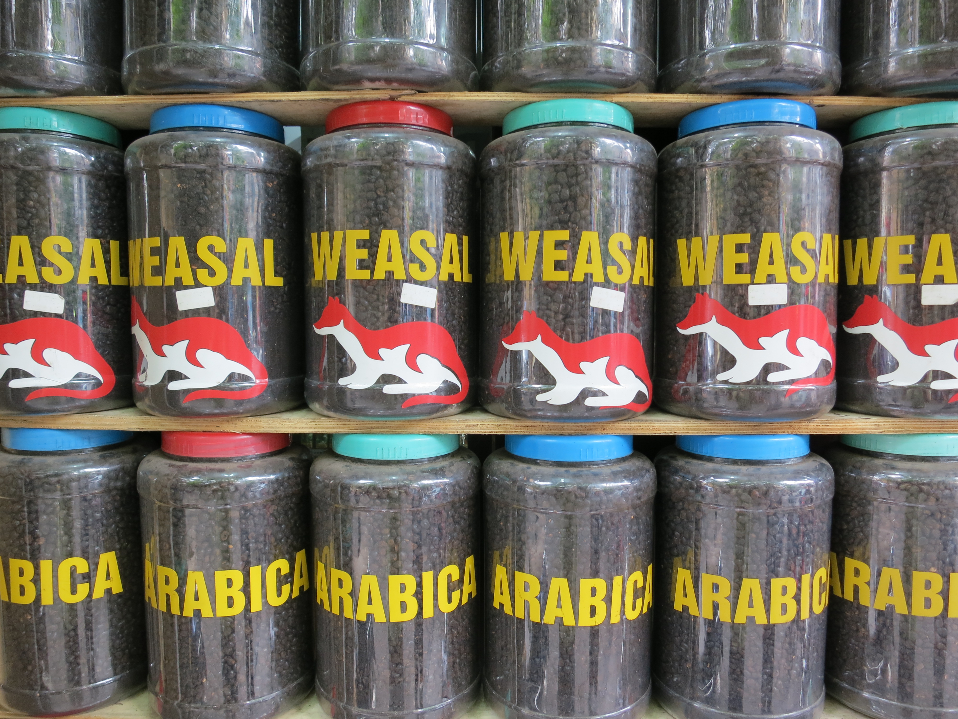 One of the more famous varieties in the area (similar to the famous Kopi Luwak in the Phillipines) is a type of coffee bean that is eaten by a weasel and then subsequently “collected” from the droppings. Supposedly, this acts as both a screening process for the beans, as the weasels only eat the beans that are at the peak of their freshness, and a processing step that adds a bit of early flavor to the coffee