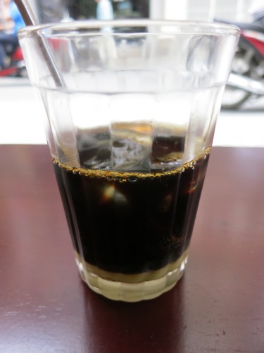 Given the heat and humidity, however, many opt for the Ca Phe Sua, which is the same as the Vietnamese style pictured above, just served chilled over ice. In this case, I snapped the picture before stirring up the sweetened, condensed milk
