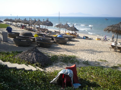 Additionally, if you’re weary bones are aching and nothing sounds better to you than a nice spot of sand along the beach, a cold beverage in one hand, and a day free of obligations, Hoi An can deliver in that department, as well.  There are several beaches (though it is really just one long beach that stretches all the way to Danang) about 6 kilometers outside of town, complete with beach bars and rental chairs for those particularly lazy days.  Although the long, sweaty walk through the rice paddies to get to the beach offers a few nice views, renting a bike is likely a more sensible options — especially given that the going rate for hiring a bike is only $1/day: