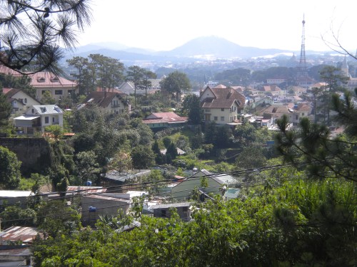 A view over the city of Da Lat, with the familiar landmark of the Eiffel Tower-like antennae visible in the distance to the right
