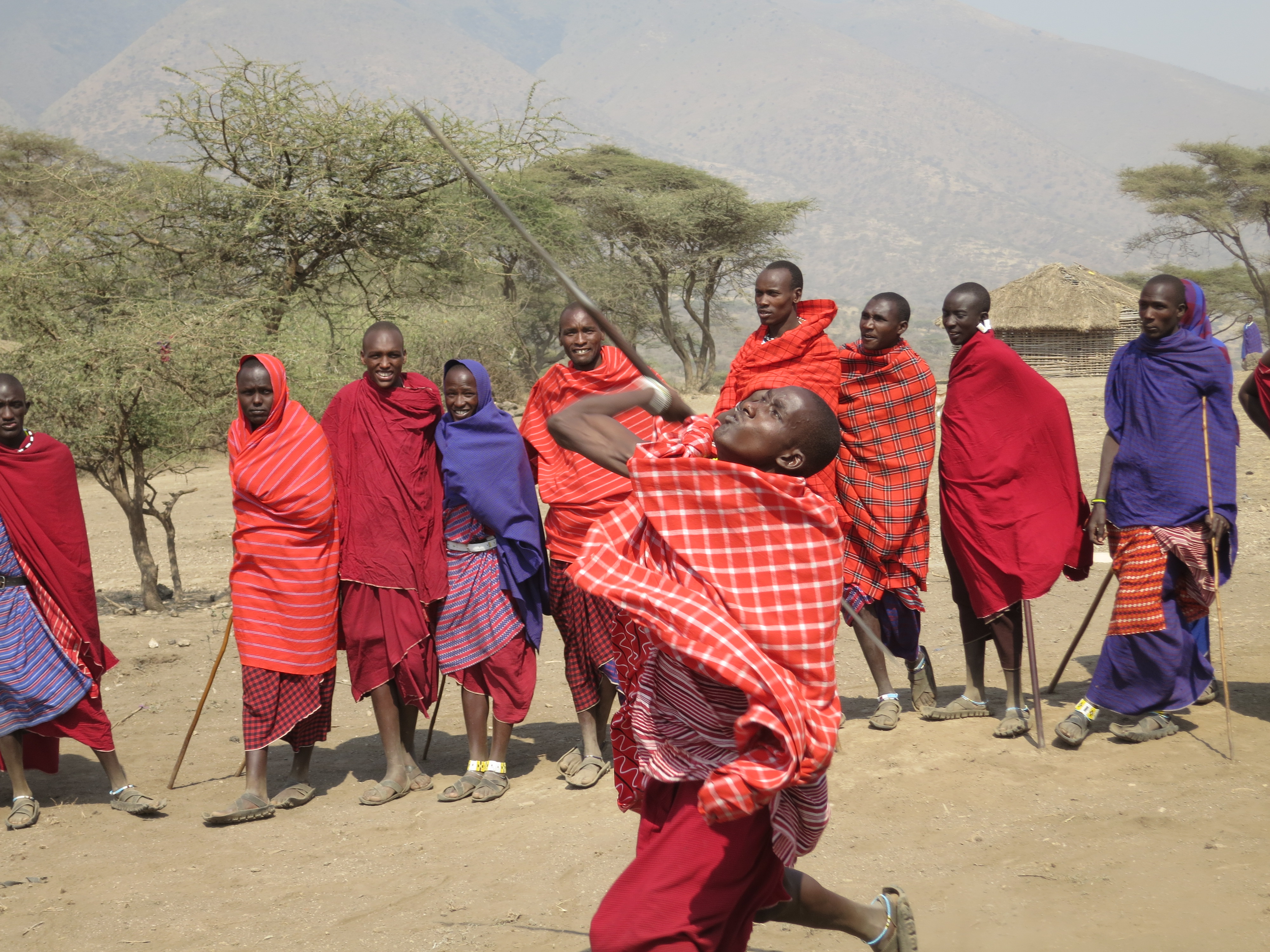 The Maasai warriors are also well-known for their prowess with a spear. Seen here is a spear-throwing contest amongst the village’s young men