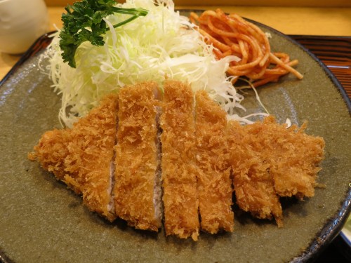Pork Tonkatsu – a thin pork cutlet breaded in panko (Japanese breadcrumbs) and then deep-fried. Although I hadn’t applied it yet when I took this picture, it is usually eaten with a thick, Worcestershire-like sauce poured on top (or Miso paste, depending upon where you’re at)