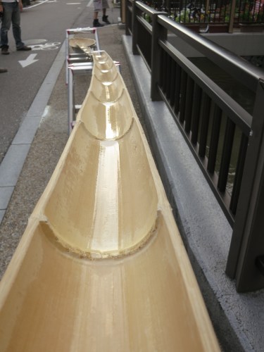 Moving outside (this is a summer treat, remember), we set up a long bamboo slide with a hose hooked up to the top end