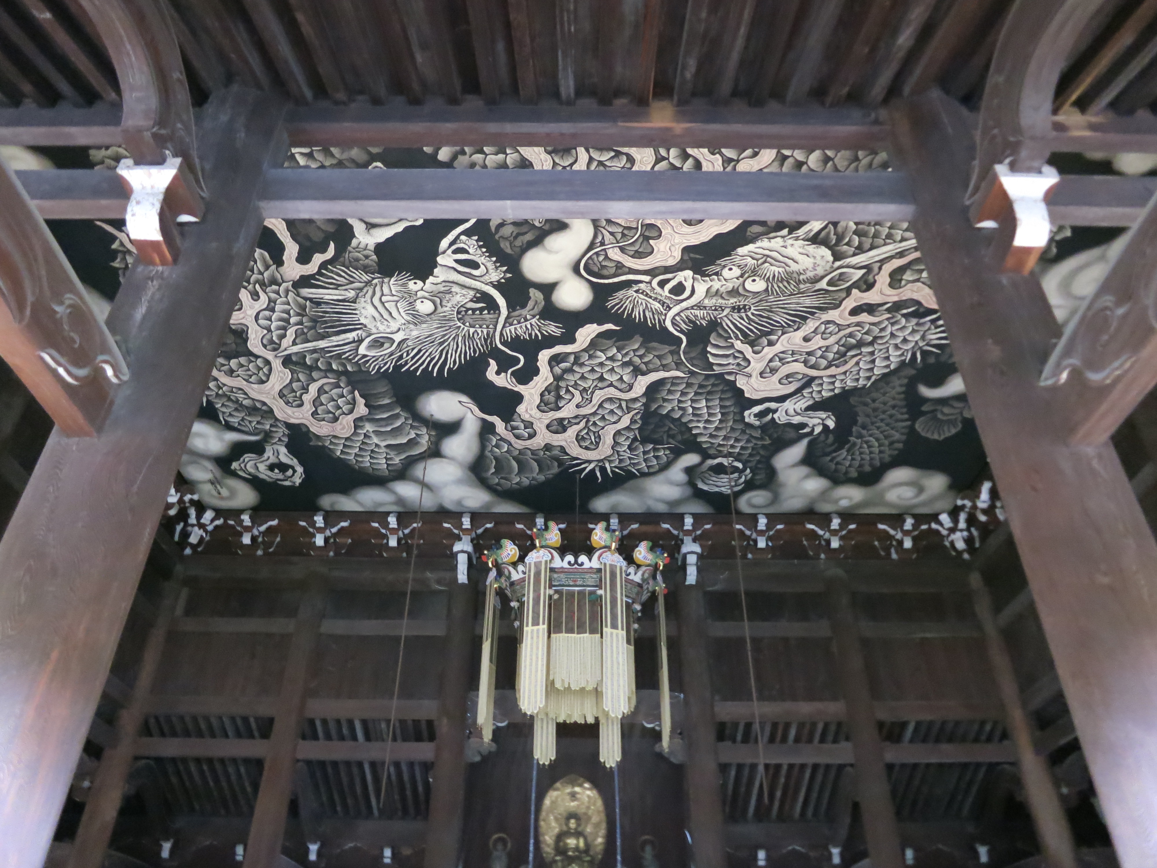 The Twin Dragons painting on the ceiling of the Kinninji Temple