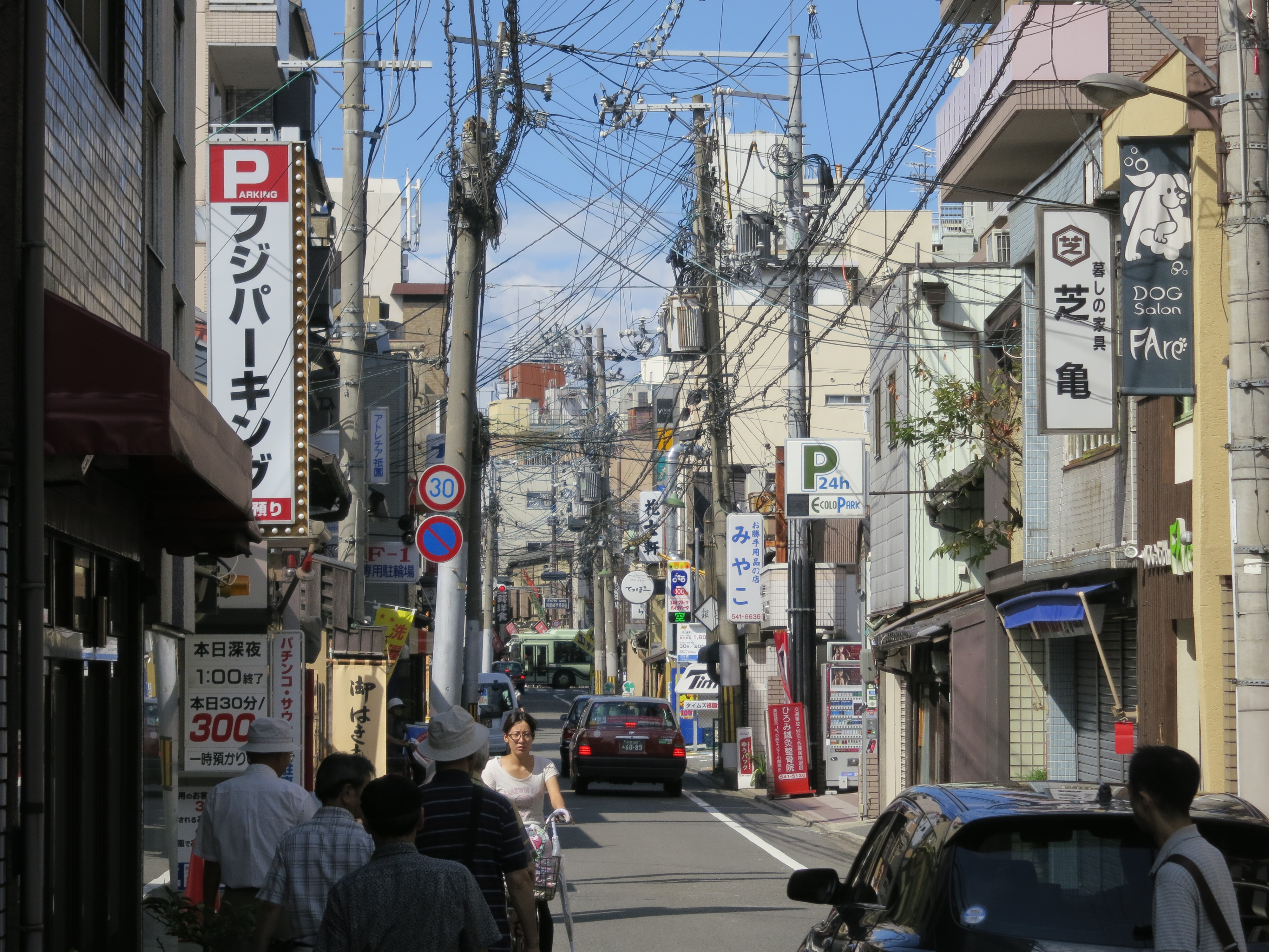 The streets of the city, complete with the Gordian’s Knot of power lines streching across every intersection