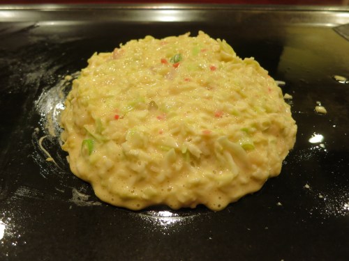 The mixed batter when first hitting the hot surface
