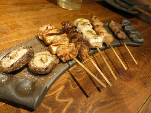 Yakitori again – this time is was chicken breast, thigh, heart, gizzard, and thigh with onions