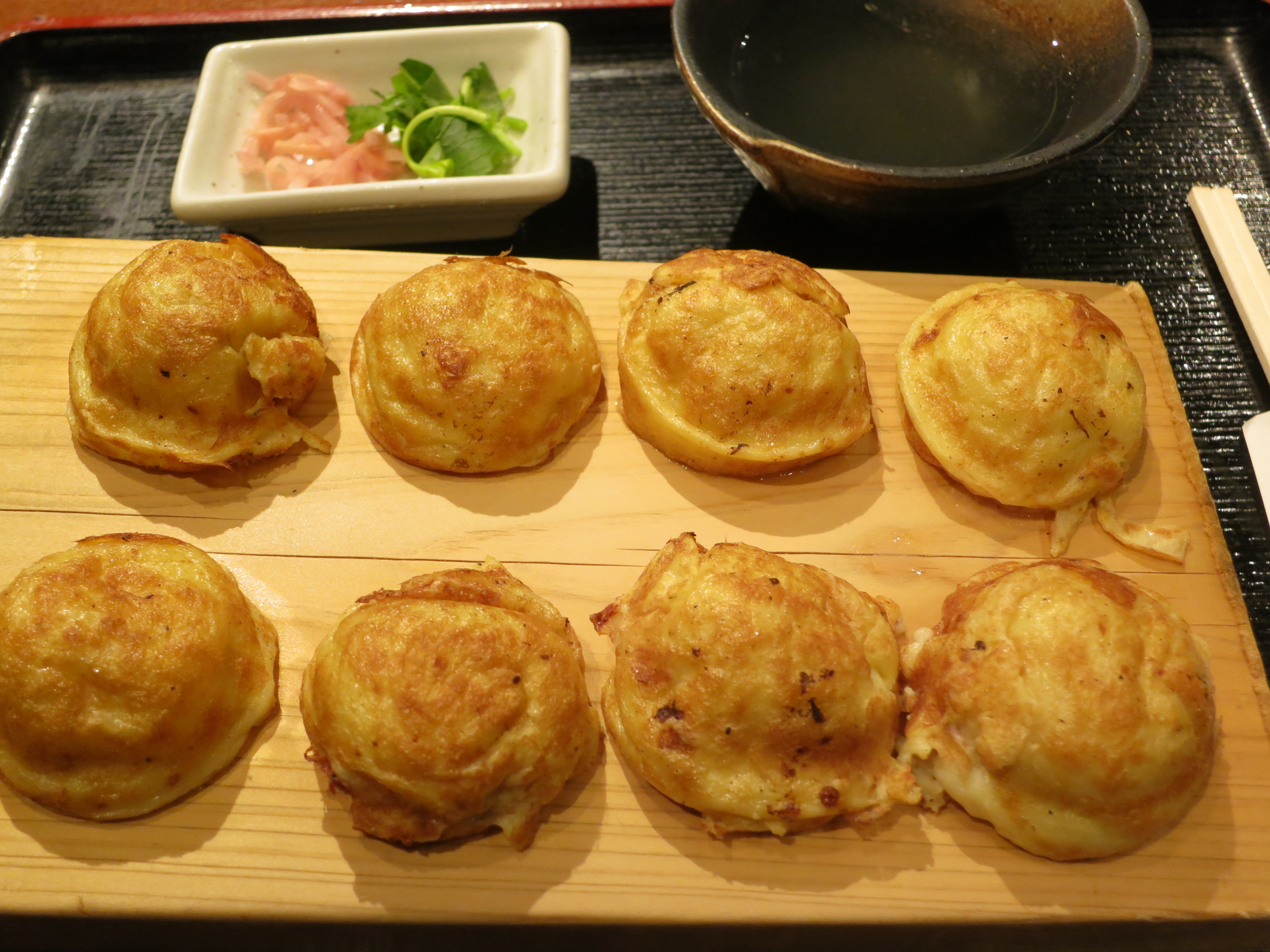 Another variation is known as Akashiyaki (from the city of Akashi), in which the chunks of octopus are coated in a egg batter as opposed to the more traditional tempura-like batter, and then are to be dipped in dashi (a seawood stock) on their way up to your mouth