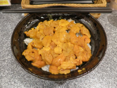 As evidenced by my sushi photos back in Tokyo and Kanazawa, I’m a huge fan of Uni (Sea Urchin Roe). Thus, when I discovered that a masterpiece such as “Unidon” exists (a bowl of rice covered in Uni), I knew I had to have it. Have you ever seen something so beautiful?