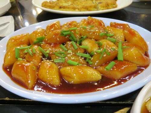 Ddeokbokki – chewy rice cakes served up in a spicy hot sauce, the perfect way to end a night