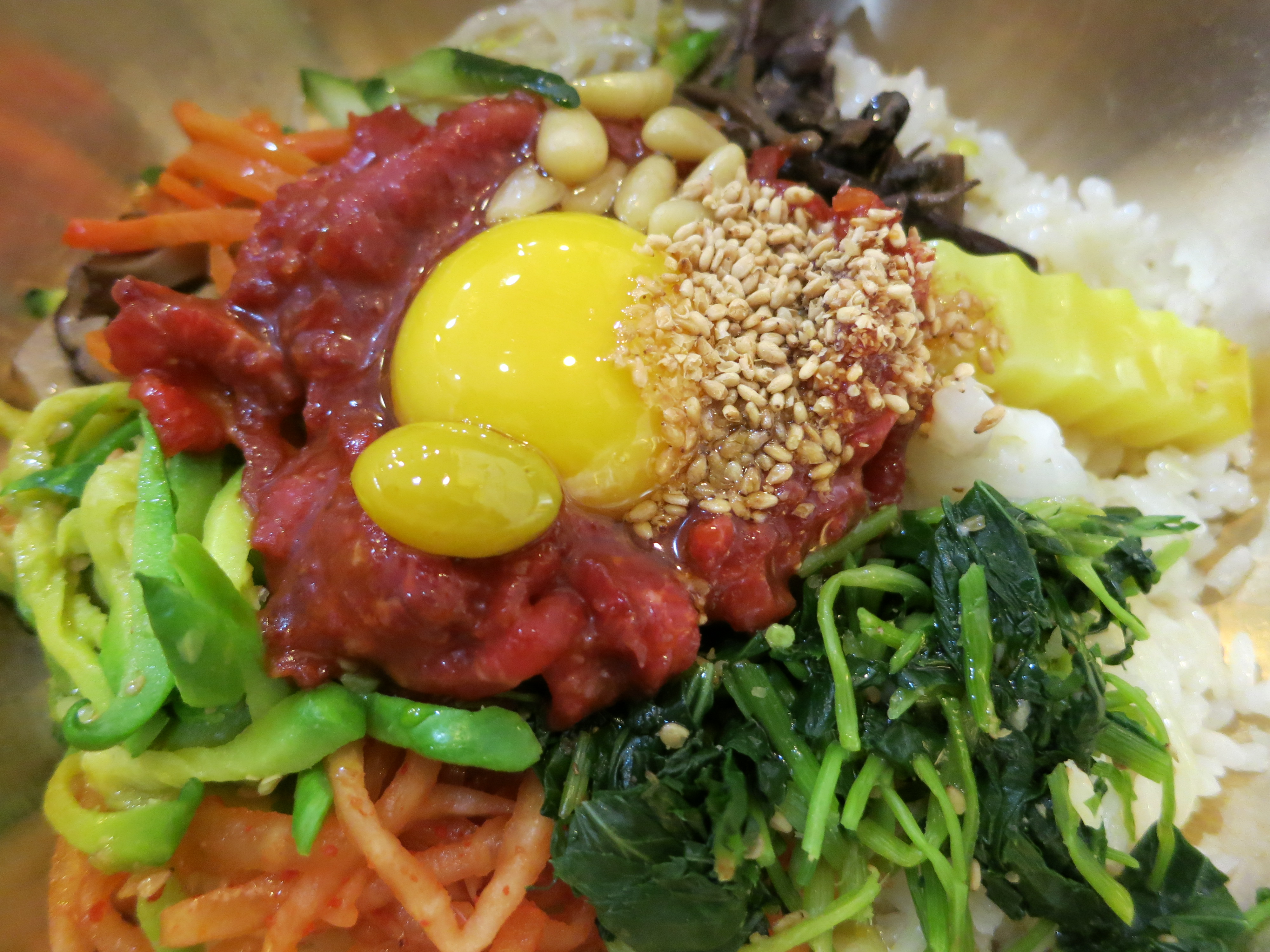 The initial presentation of a bowl of Bibimbap