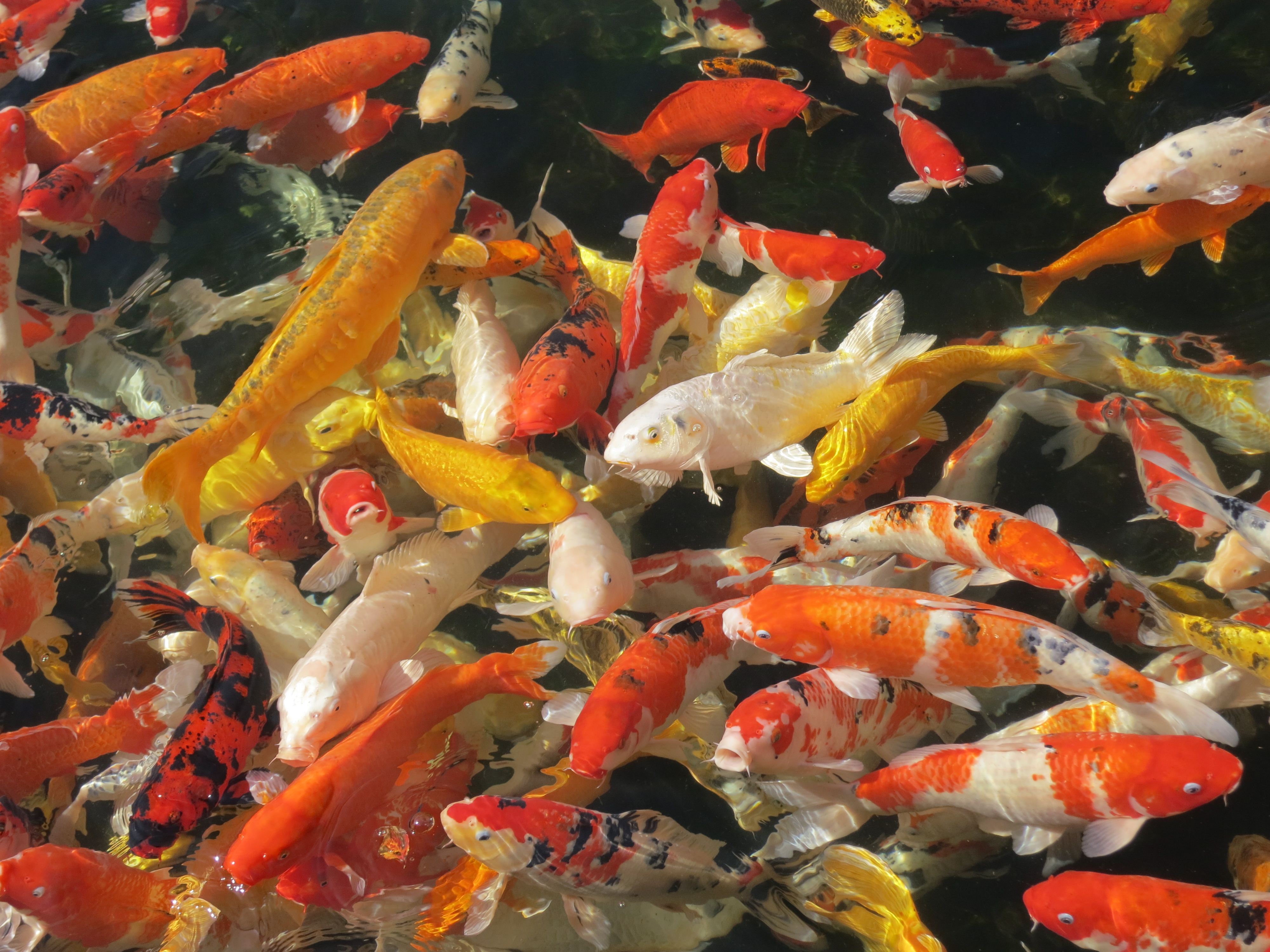 Many goldfish looking for an easy bite of food