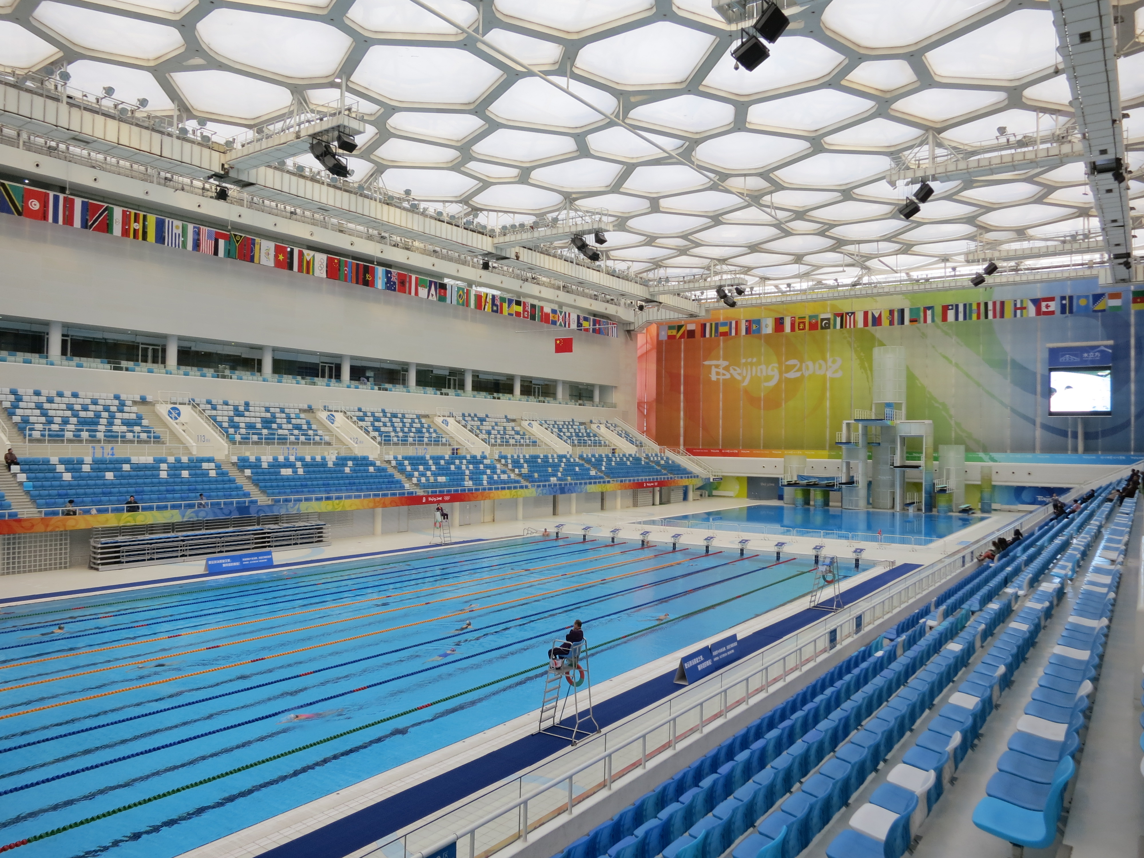 A quick peek inside the Water Cube reveals the pool where Michael Phelp’s won all of his medals (and for a few bucks, you can actually swim here, too)