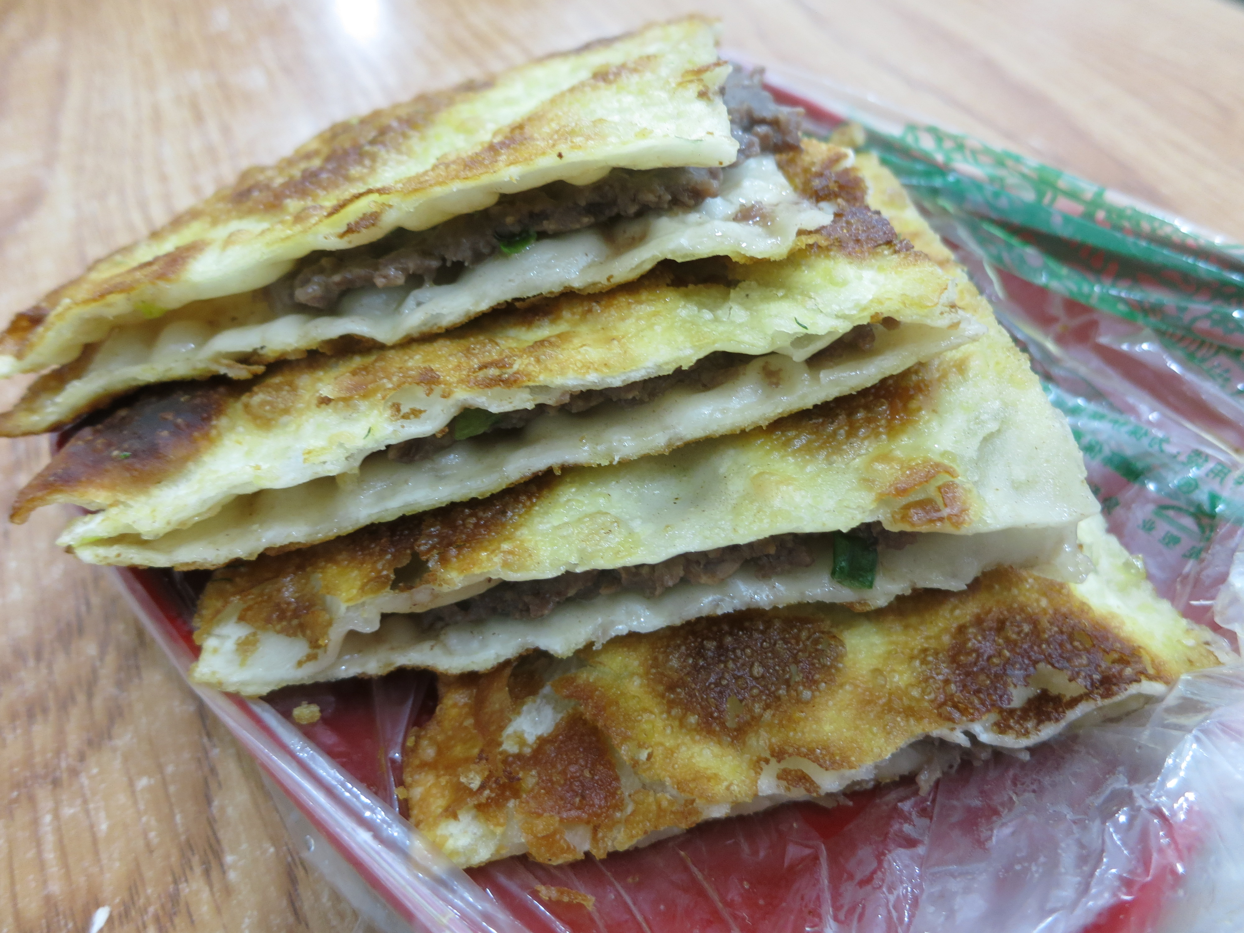 This is another dish for which I never figured out the name. Essentially, they would take two flat discs of uncooked dough, stuff raw lamb meat between them (creating a sandwich), pinch the sides together to seal everything in, and then deep fry the entire lot for a few minutes.