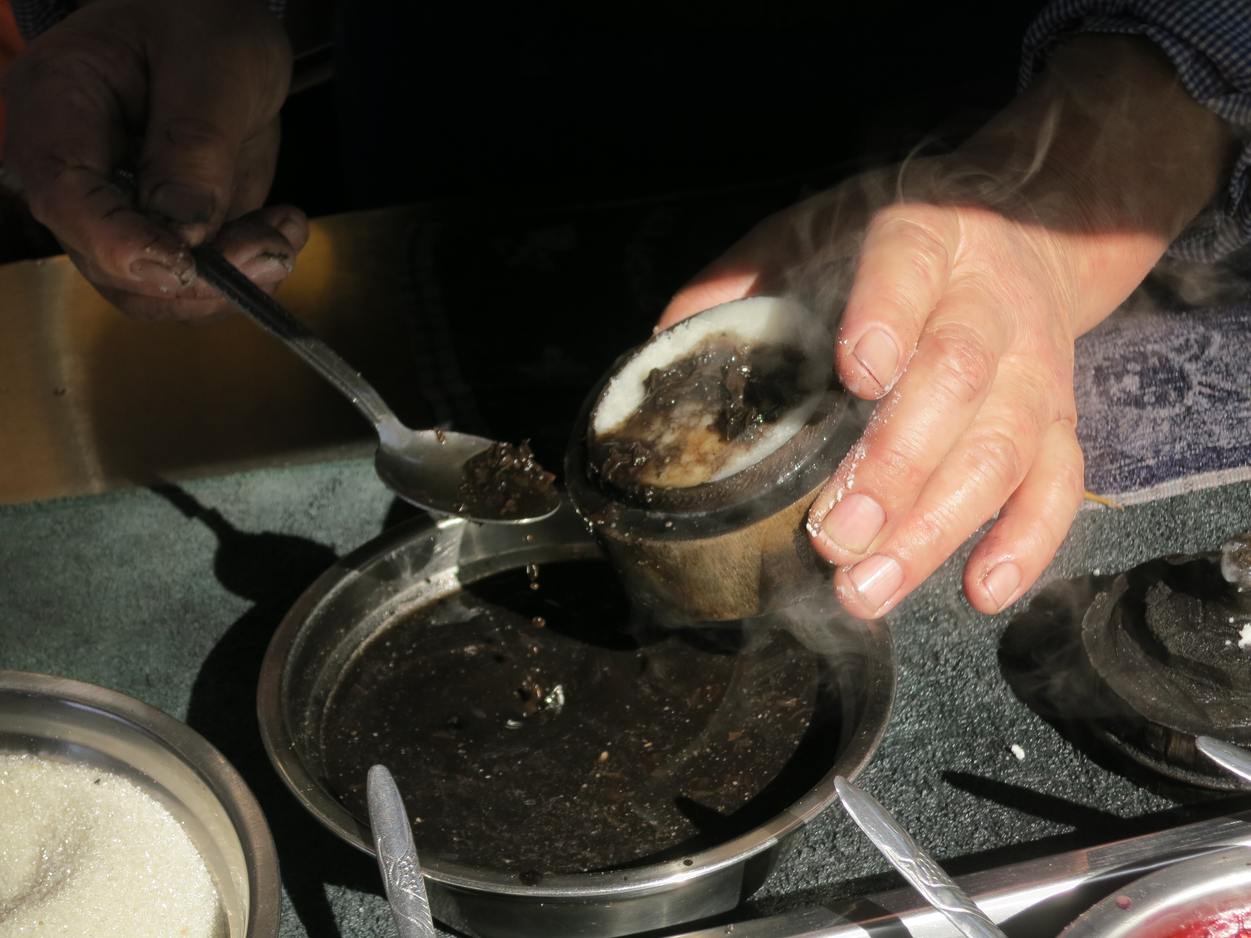 Babao Meigui Jing Gao – small wooden molds are filled with ground sticky rice and then steamed. Once the starchy powder has gelatinized, it is then pulled out, dusted with sugar, topped with any of a variety of flavorings, and skewered
