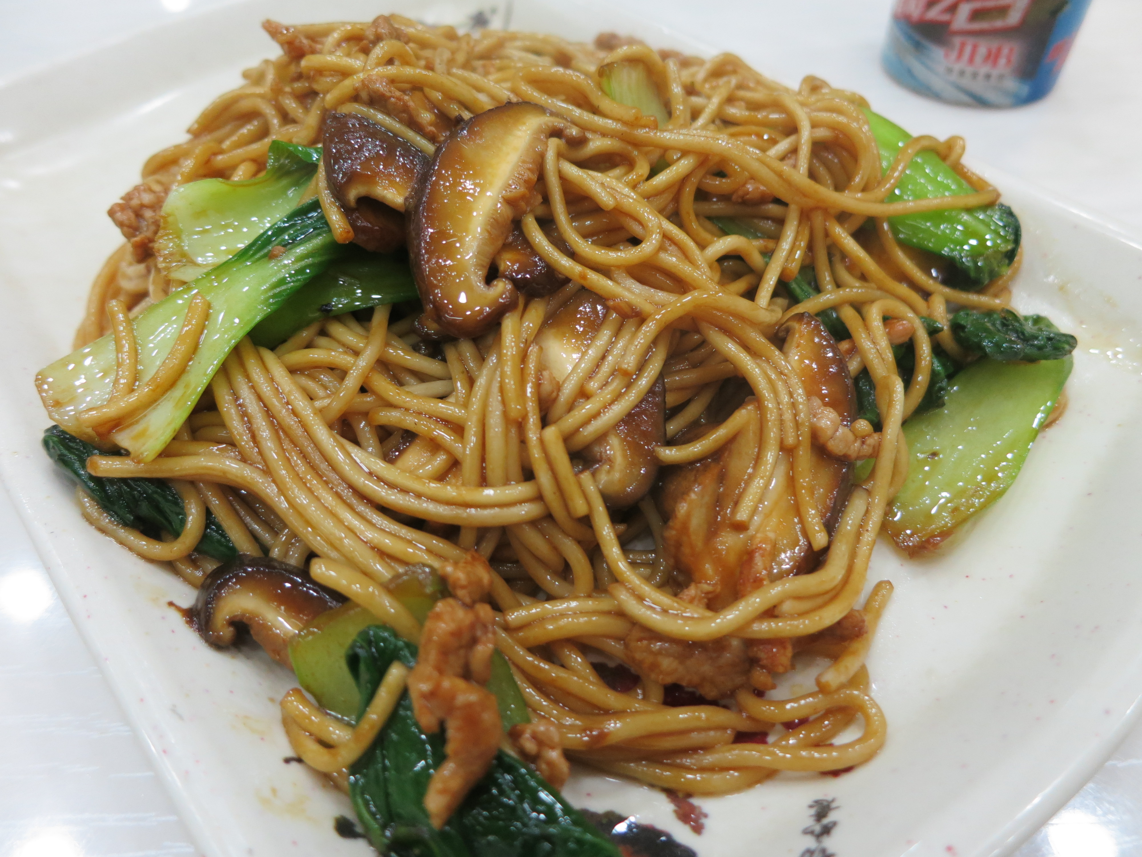 Shanghai Style Fried Noodles, cooked using Shanghai cumian, a thickly cut pasta, and copious amounts of soy sauce